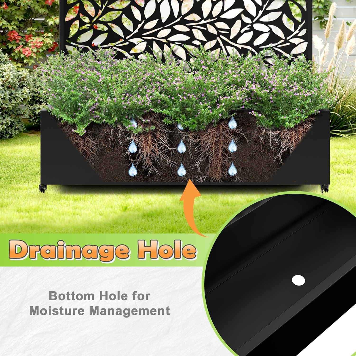 • Optimal Water Management: The planter with trellis is designed with a certain depth planting bed, providing ample space for root growth. The raised garden bed also includes built-in drainage holes that effectively prevent waterlogging, ensuring your plants receive the right amount of moisture for healthy development.