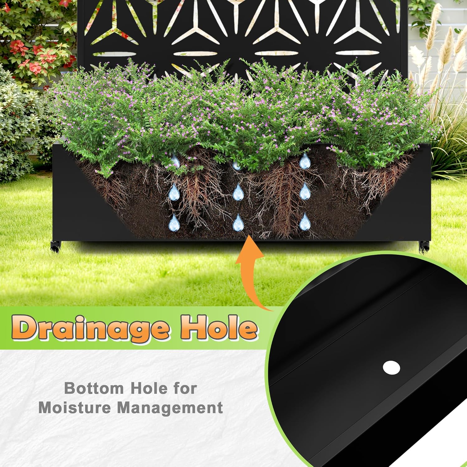 • Optimal Water Management: The planter with trellis is designed with a certain depth planting bed, providing ample space for root growth. The raised garden bed also includes built-in drainage holes that effectively prevent waterlogging, ensuring your plants receive the right amount of moisture for healthy development.