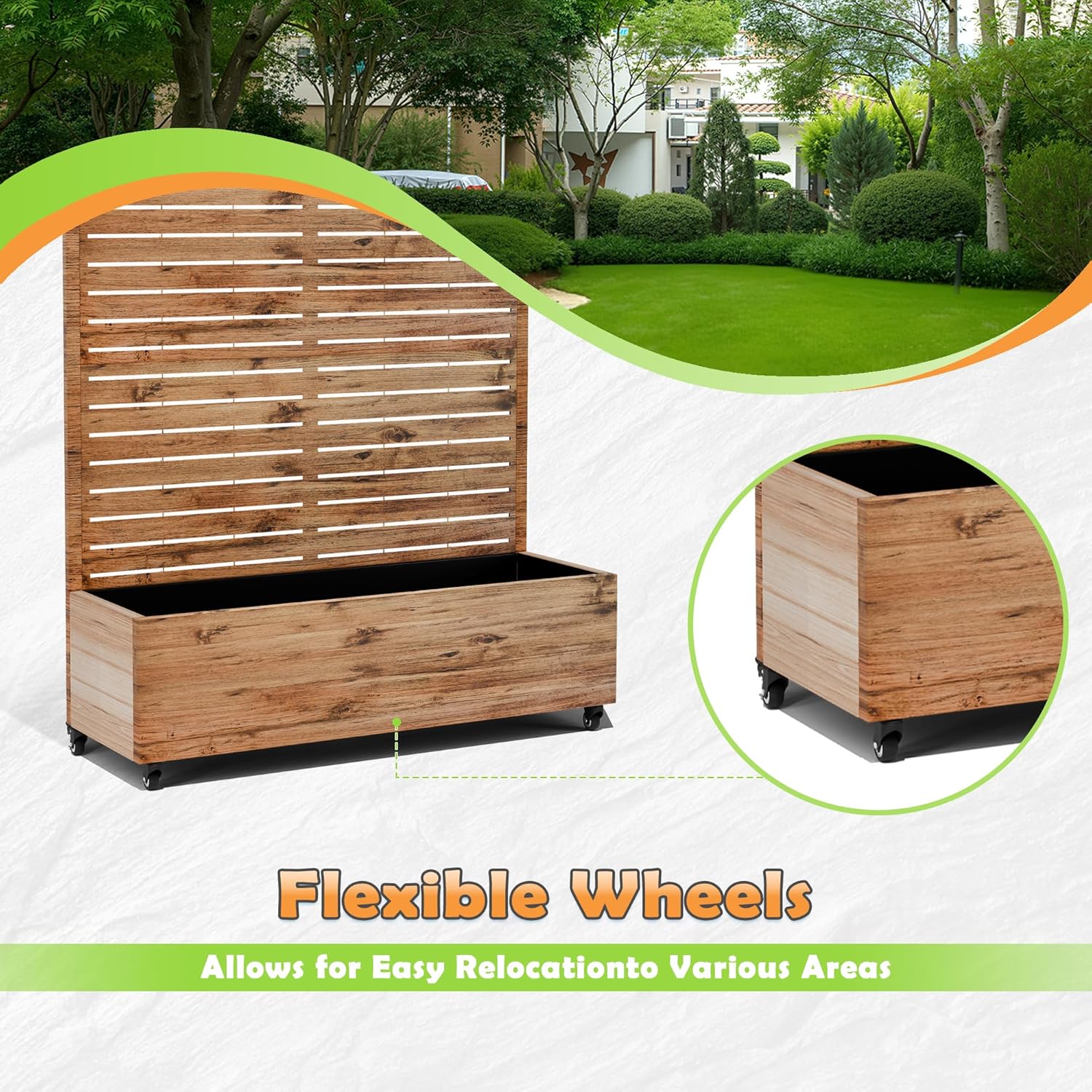 • Smooth-Rolling Wheels: Equipped with four smooth-gliding wheels, this garden bed can be moved effortlessly to follow the sun or refresh your patio layout. Whether you're shifting it for better light or seasonal changes, the garden bed rolls with ease and flexibility.
