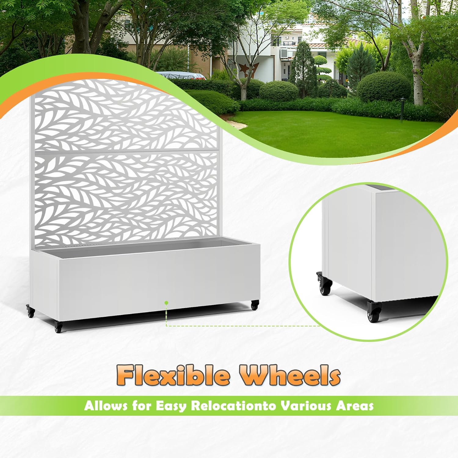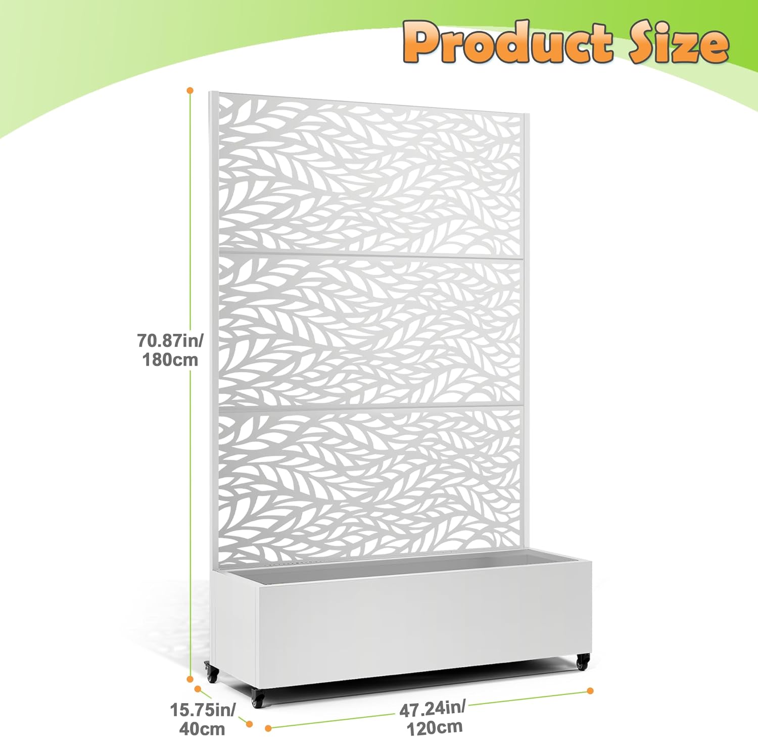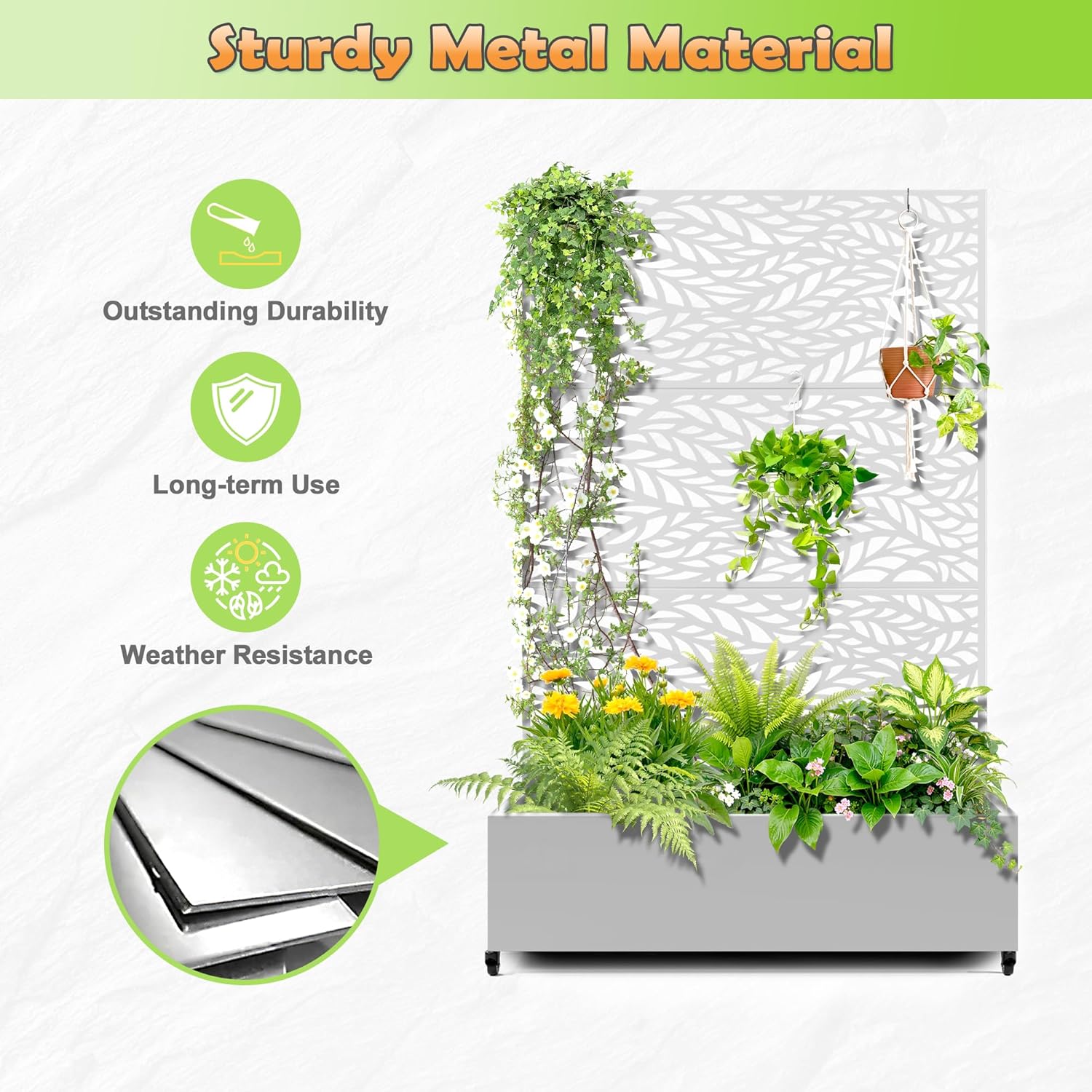 Metal Raised Garden Bed with Trellis, 2-in-1 Planter Box & Privacy Screen for Climbing Plants, Outdoor Standing Flower Bed with Drainage Holes, 47.2" L x 16.7" W x 70.8" H, White-Spring