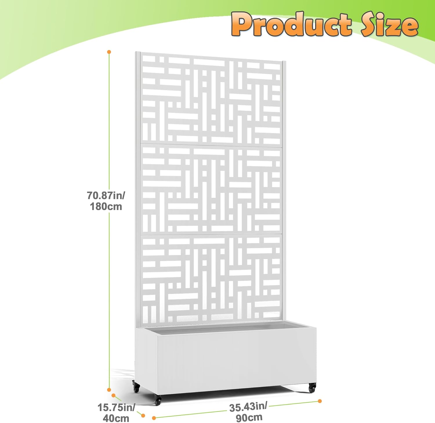 Metal Raised Garden Bed with Trellis, 2-in-1 Planter Box & Privacy Screen for Climbing Plants, Outdoor Standing Flower Bed with Drainage Holes, 35.4" L x 15.7" W x 70.1" H, White-Helen