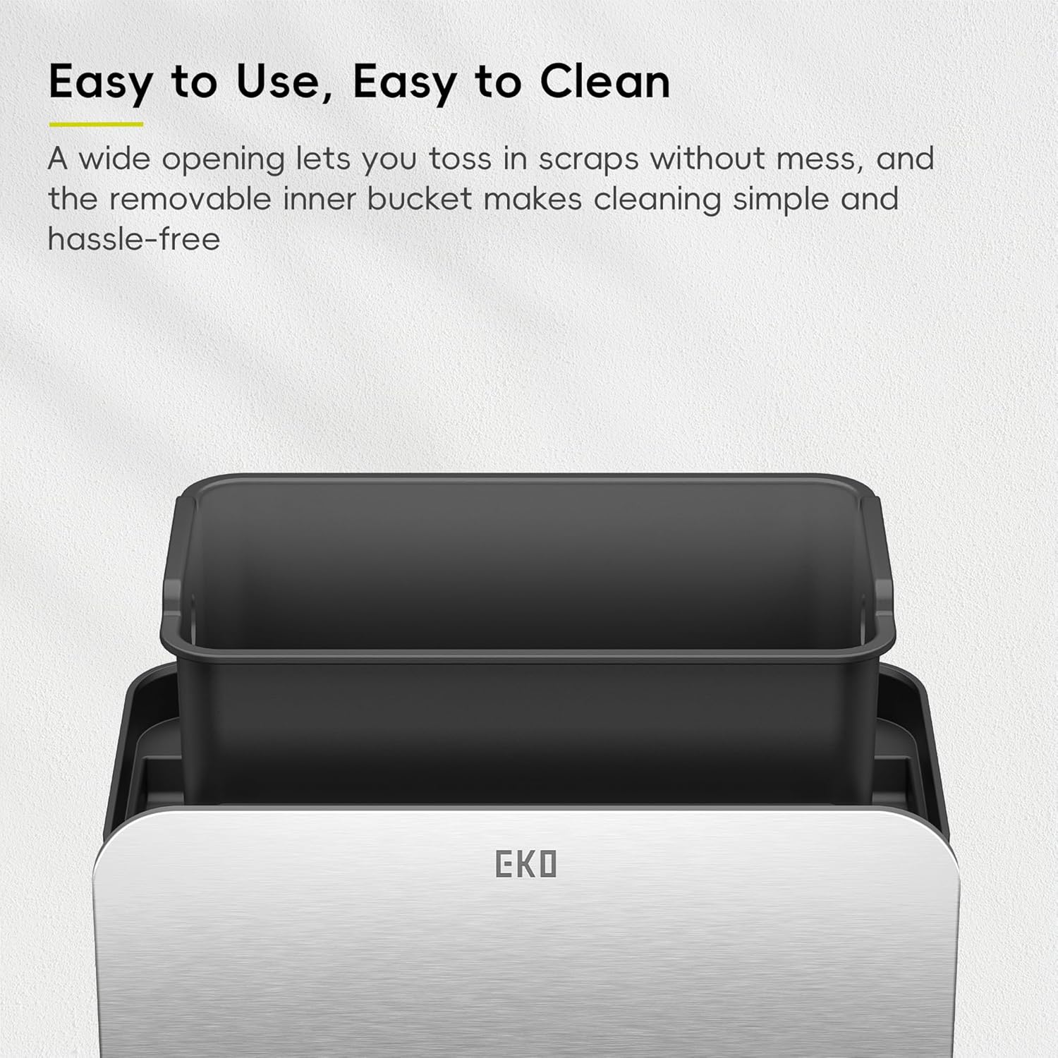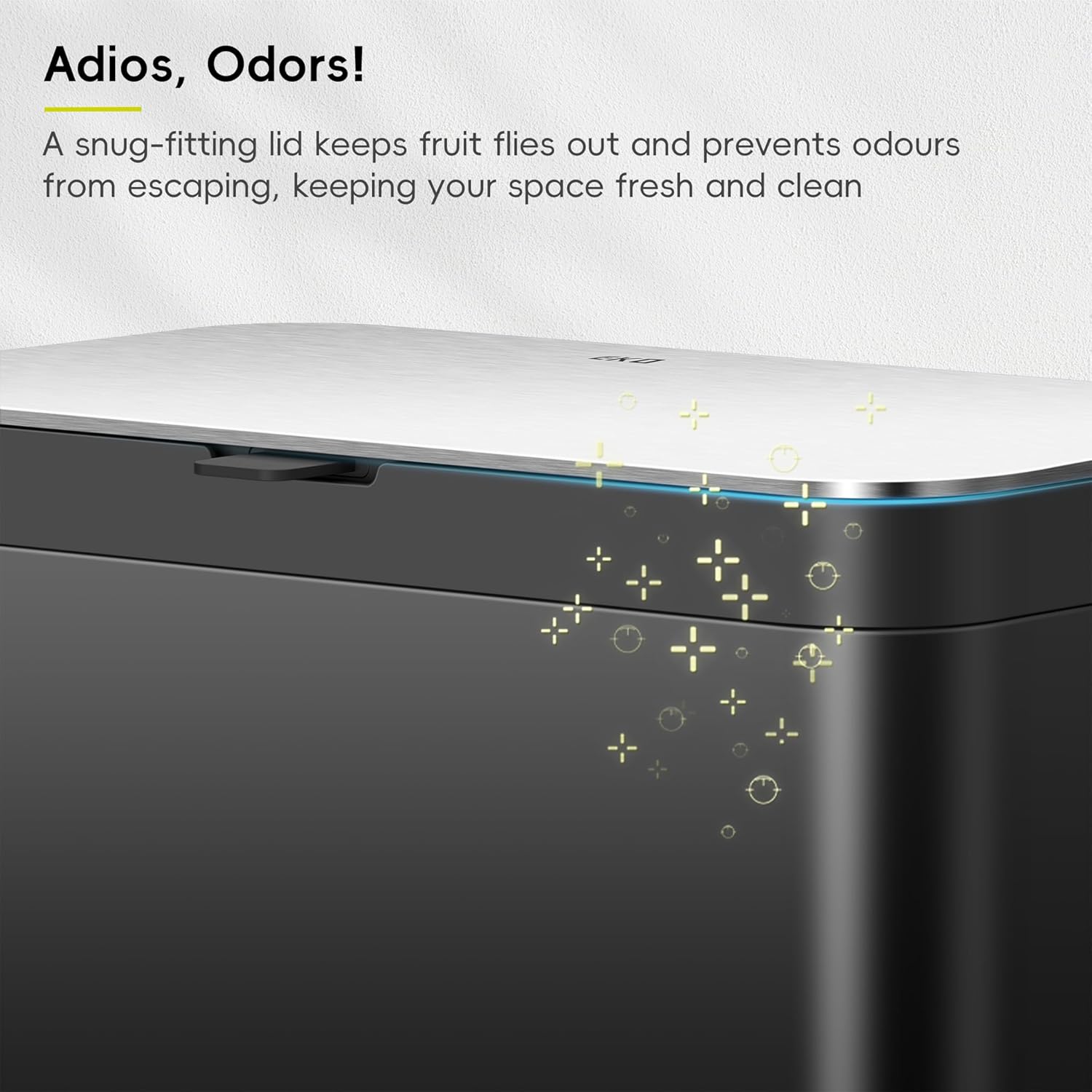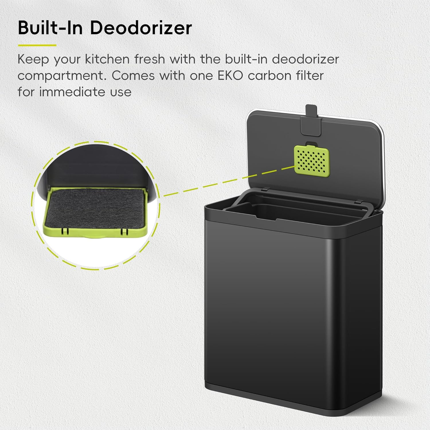 • Fresh & Odour-Free - A snug lid and built-in deodorizer compartment—with one EKO carbon filter included—lock in smells and keep fruit flies out, leaving your kitchen clean and fresh