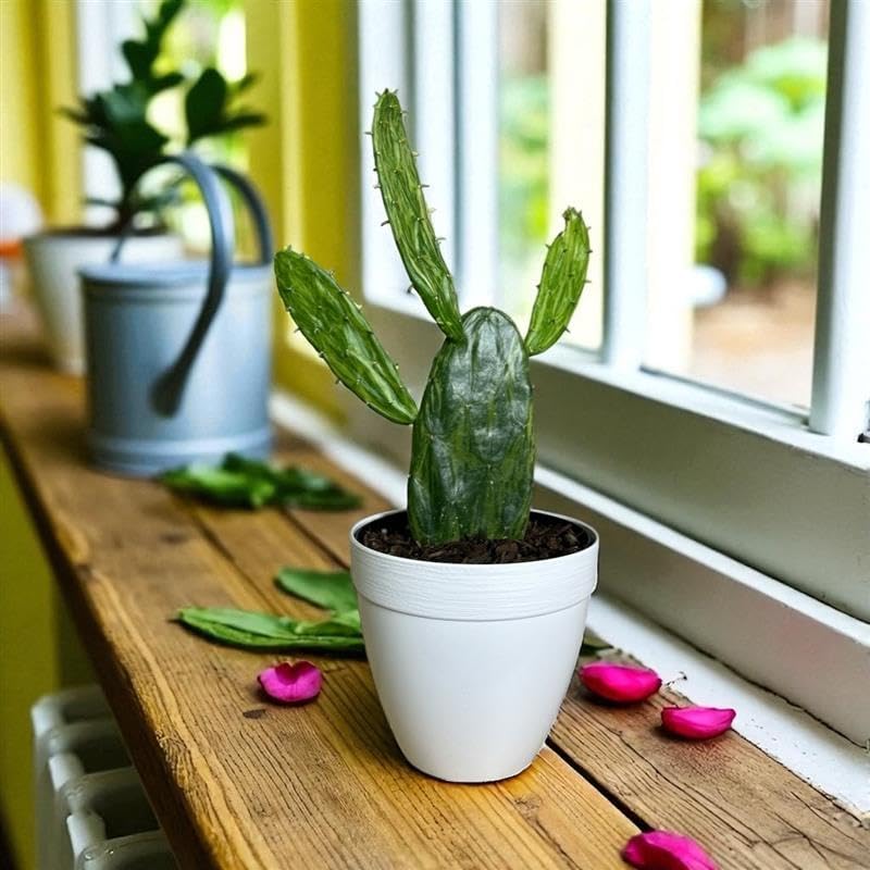 • LIVE PLANT: Variegated Opuntia cactus in a decorative 6-inch pot, perfect for both indoor and outdoor settings