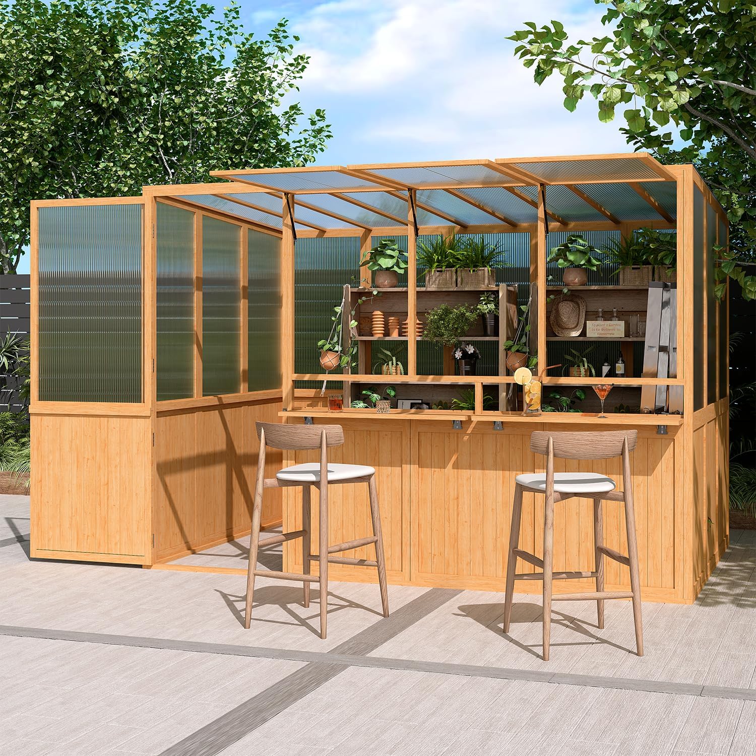 U-MAX 6x10 Ft Wood Greenhouse for Outdoors with Openable Window & Lockable Door, Heavy Duty Lean to Walk in Greenhouse with Polycarbonate Panel for Outside, Garden and Backyard