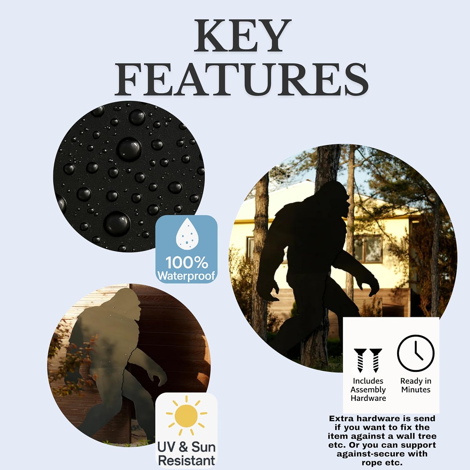 • QUICK & SECURE INSTALLATION – Mounting Screws allow easy mounting and stable placement, ensuring your Sasquatch sculpture stays put in any season.