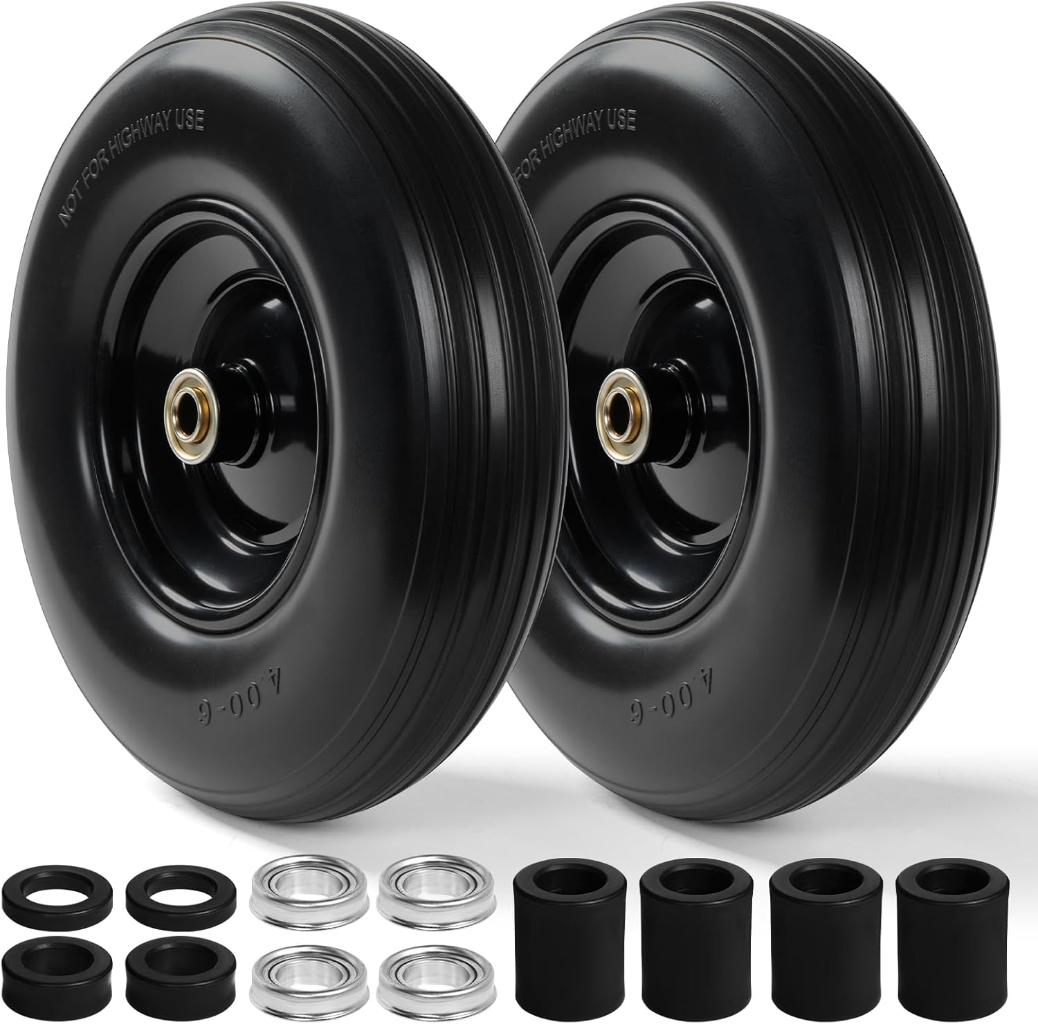 • 2-PACK VALUE: Includes two 13-inch solid PU tires, four bearings, and spacers for flexible installation. Replace worn-out pneumatic tires and enjoy lasting, puncture-proof performance.