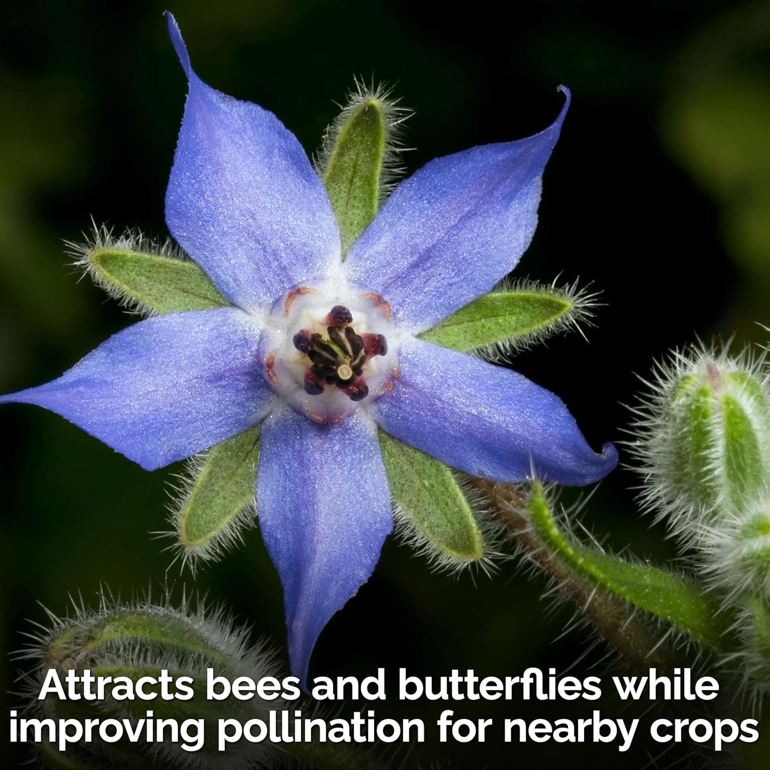 • Pollinator-Friendly Blooms: Blue borage flower clusters draw honeybees and butterflies all season. Edible flower seeds brighten teas and desserts - perfect for a sunny herb garden.