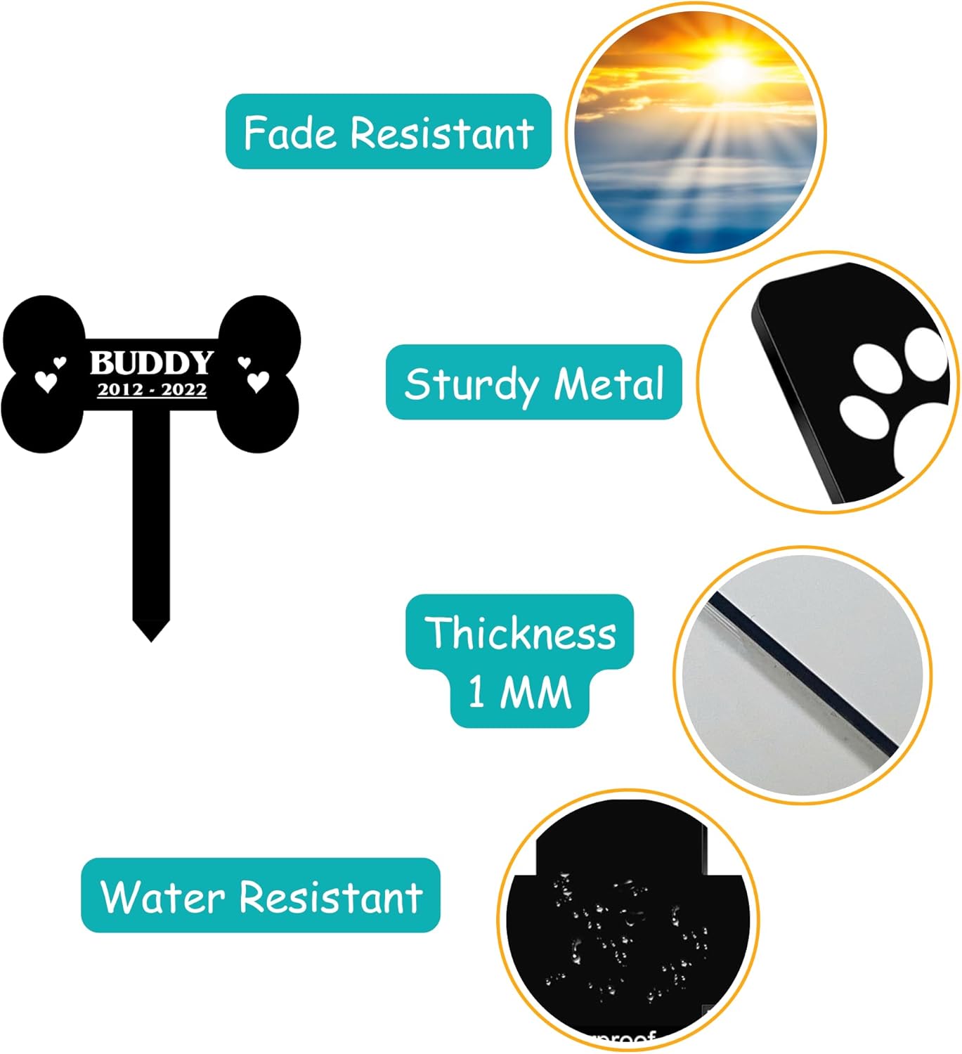 • Durable, Rust-Proof & Fade-Resistant – Our powder-coated metal grave marker is built to endure sun, rain, snow, and wind—keeping your cat’s memory safe and visible season after season.