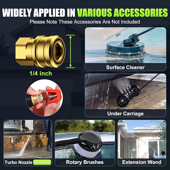 • 5000PSI Powerful Washing Power:This heavy duty power cleaner provides a water pressure of up to 5000 PSI and a water flow rate up to 4.0 GPM,ensuring superior cleaning performance. The robust motor pump is engineered for durability,reducing maintenance requirements while enhancing efficiency. Ideal for removing the most stubborn grime from decks,yards, driveways,vehicles,and so on, this machine integrates high-pressure cleaning with low water consumption, delivering optimal benefits.