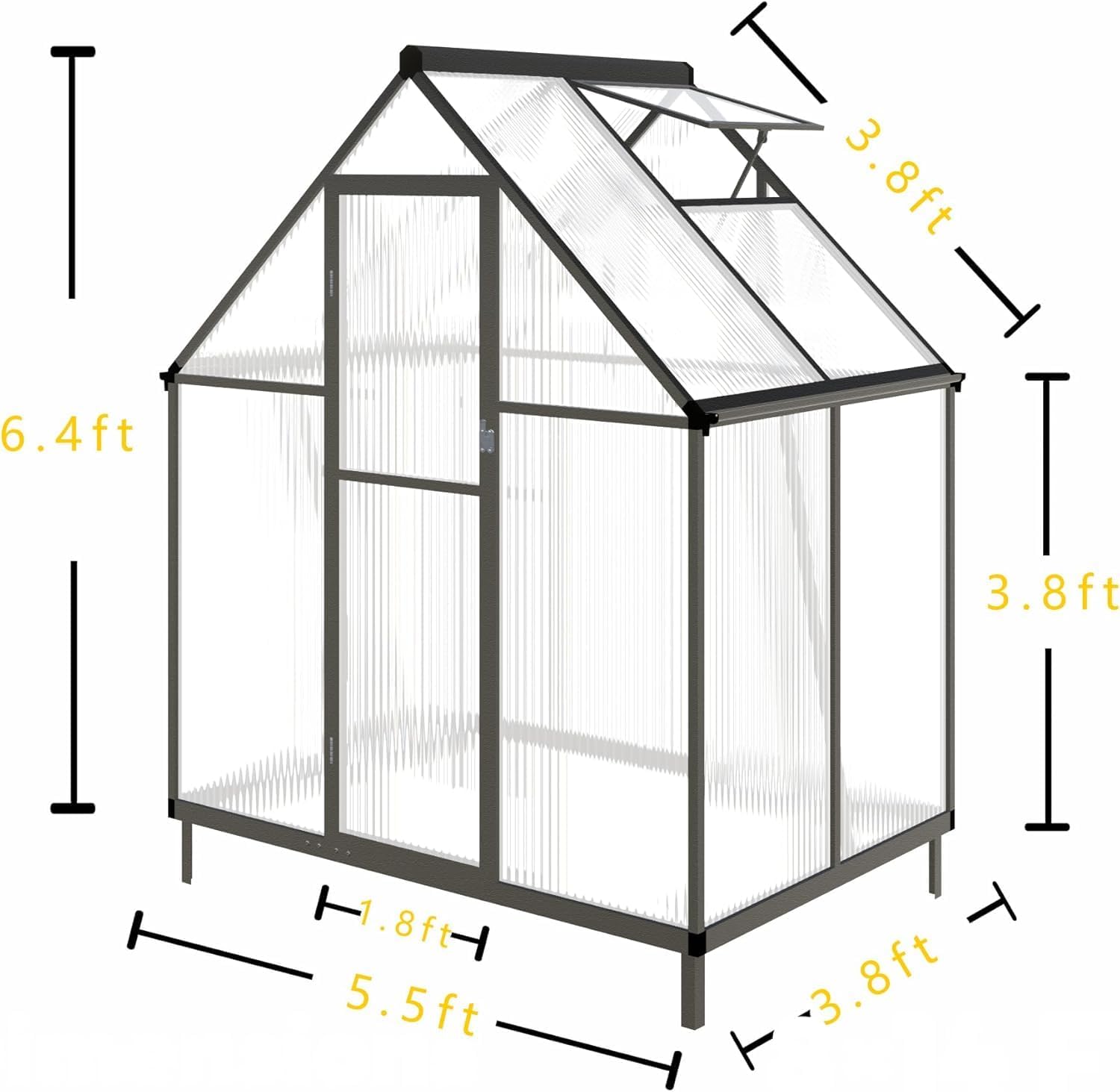 CQZY 6x4 FT Greenhouse for Outdoors, Polycarbonate Greenhouse with Quick Setup Structure and Roof Vent, Aluminum Large Walk-in Green House for Outside Garden Backyard, Dark Gray