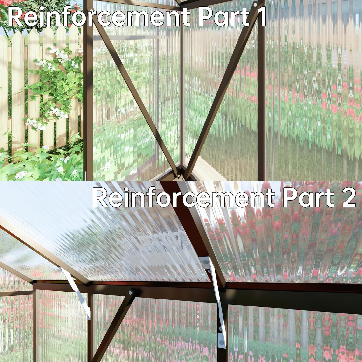 • 【Quick Setup Structure】Designed for simplicity with a quick-install system and slide-in panels, our greenhouse—perfected through over 500 tests—boosts setup speed by 40% and enhances stability by 35%. This design ensures a swift, solid build, allowing gardeners to focus more on their passion for planting.