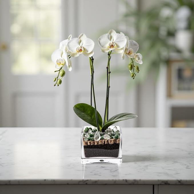 • PREMIUM INDOOR ARRANGEMENT: Professionally cultivated mature orchid ready for immediate display in quality pot with crystal accents