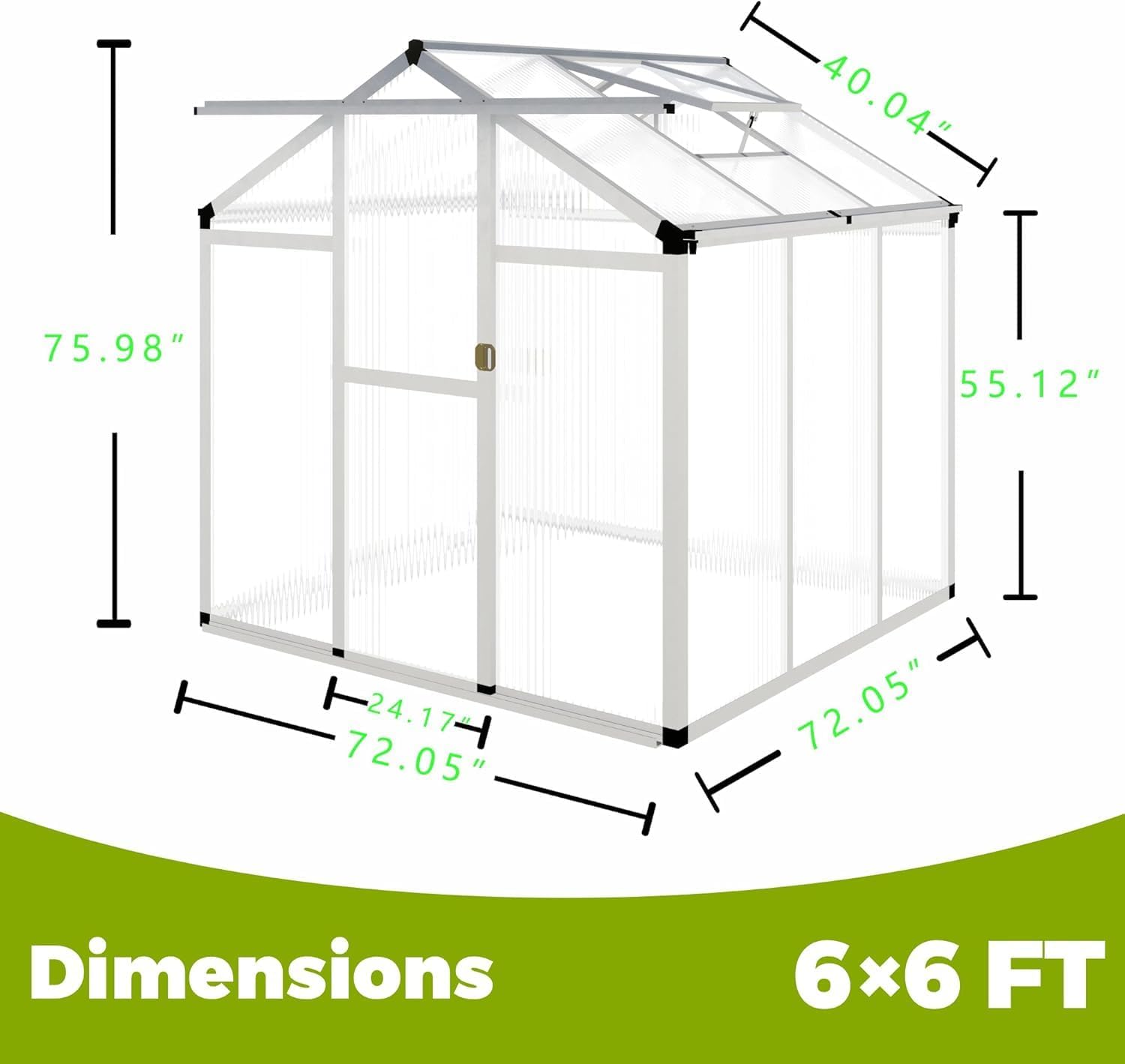 6 x 6 FT Greenhouse for Outdoors,Aluminum Walk-in Greenhouse,Silver