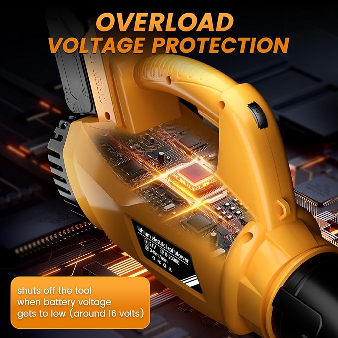 - 【Built in BMS Protection】Electric blower cordless perfectly compatible with Dewalt battery,ensuring plug-and-play and stable power supply, When the battery level is low than 16v, the system automatically shuts off the operating circuit to prevent excessive discharge, effectively extending battery life and protecting the battery cells. Whether you're a professional or everyday user, you can confidently work for extended periods without worrying about battery damage!
