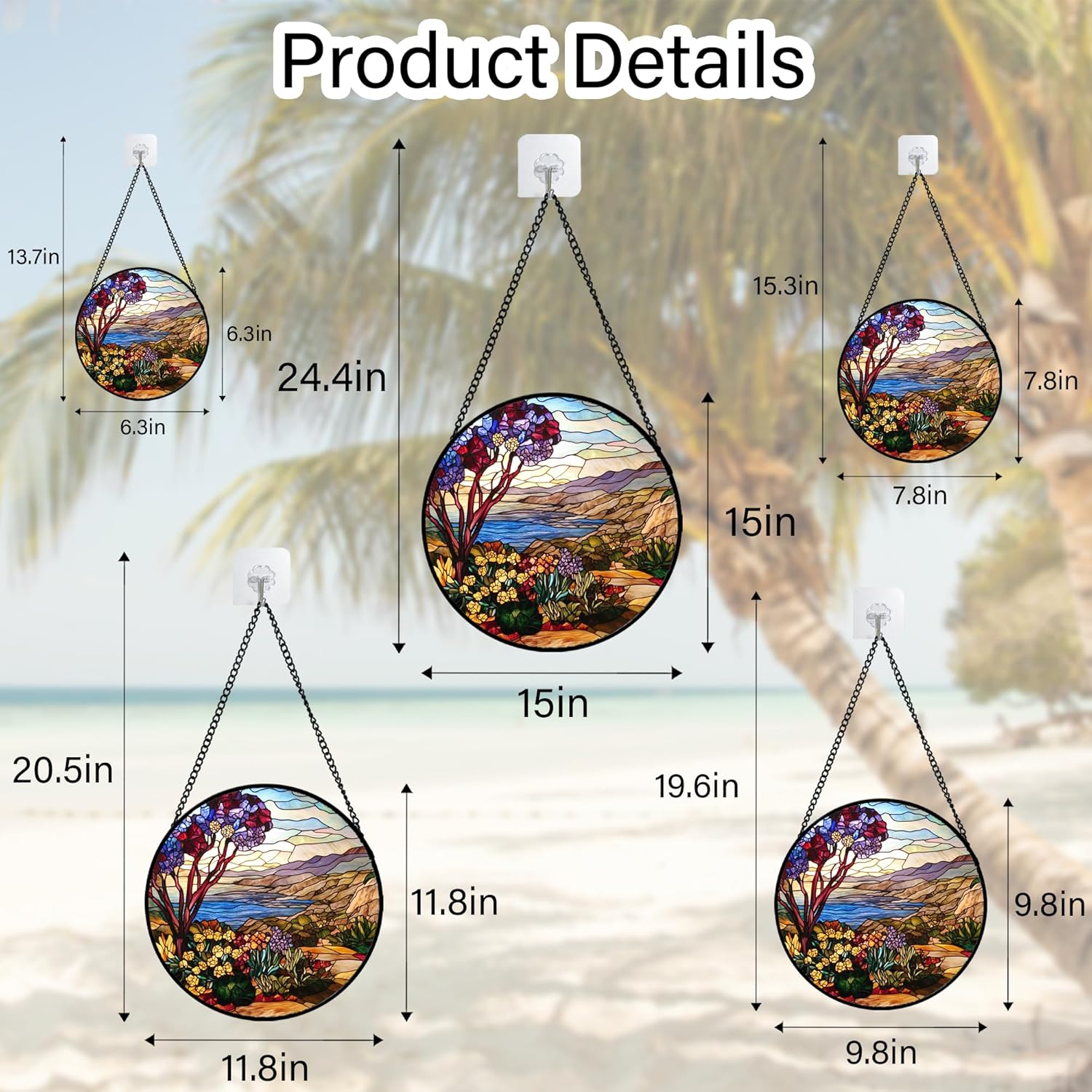 • High-Quality Materials:This colorful suncatcher is made of high-quality diamond textur glass,using UV HD print,equipp with sturdy metal frame chain,durable not easy to fade,brighten your space stun color design,this sun catcher will be the focal point of any room!