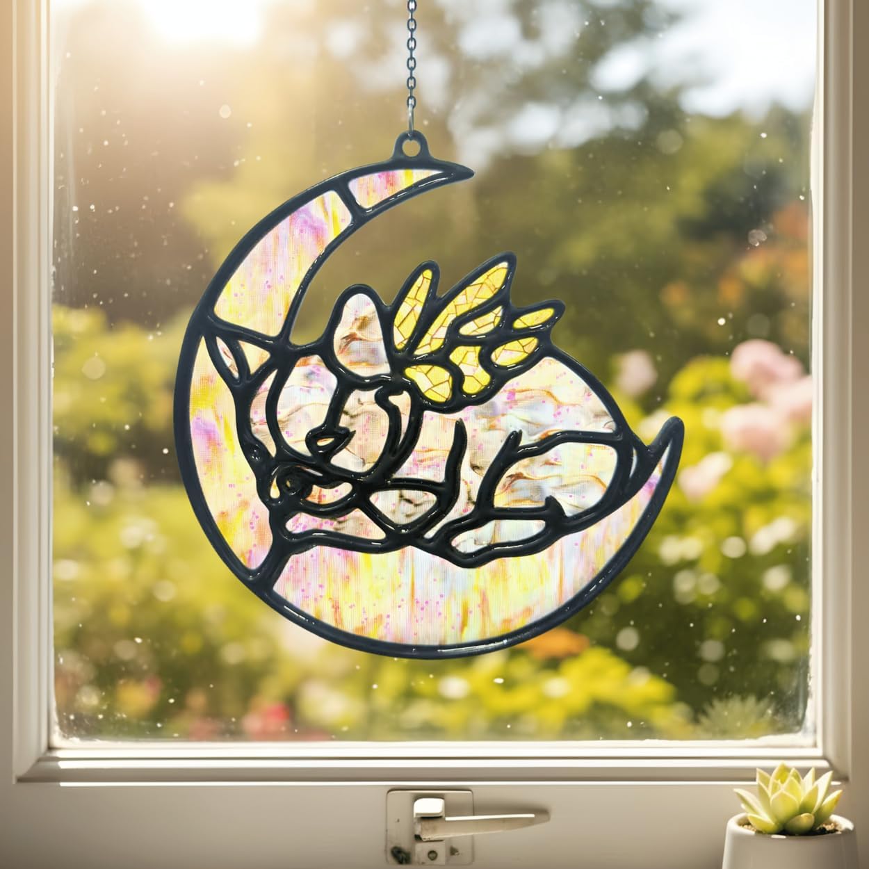 Moon Handmade Artisan Resin Sun Catcher Stained Glass Effect Christmas Window Hanging Ornament Garden Decor