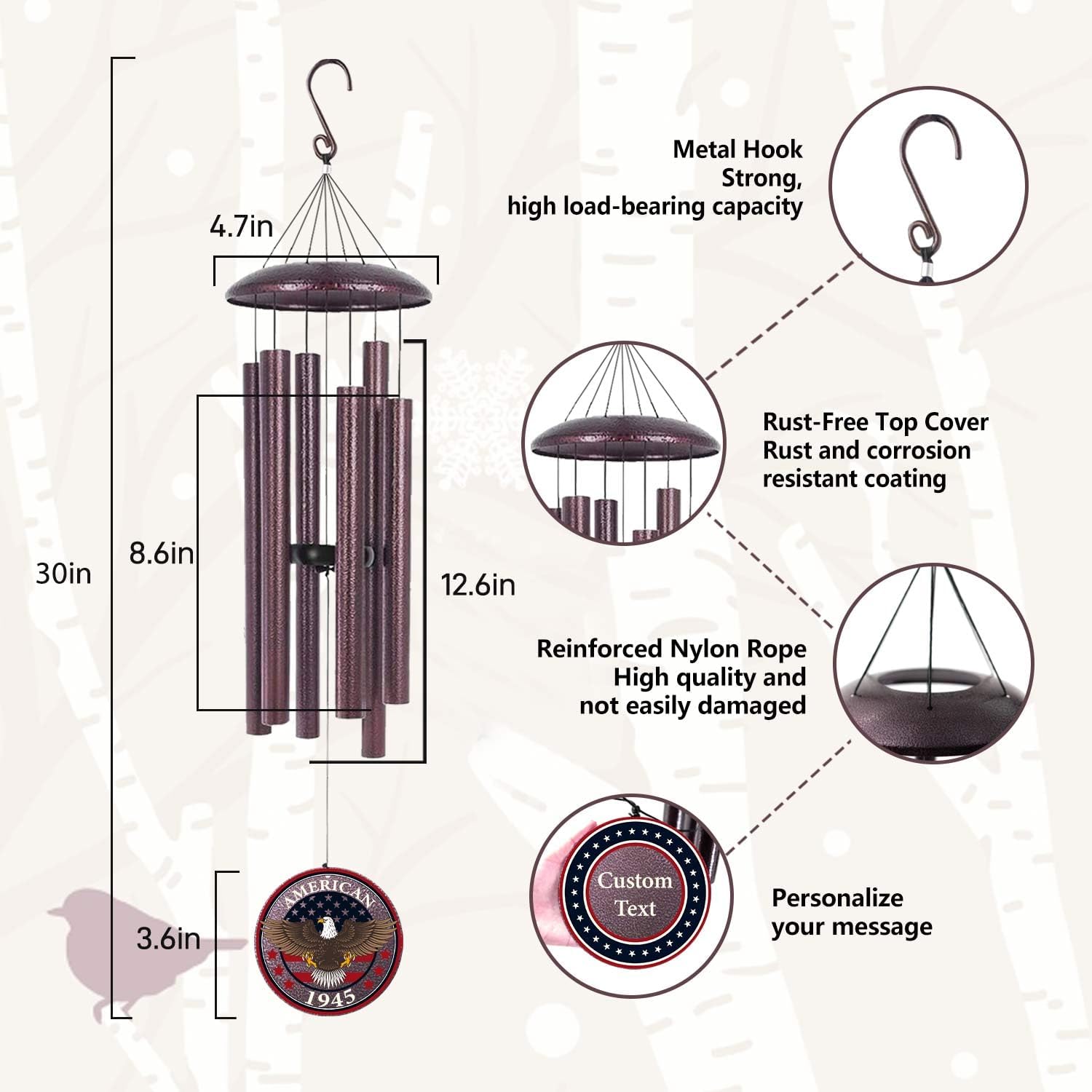 • Personalized Military Wind Chimes: Honor a hero with a fully customized gift. We expertly engrave the name, dates, and your chosen message onto the solid metal surface, creating a unique and lasting tribute for retirement or in loving memory.