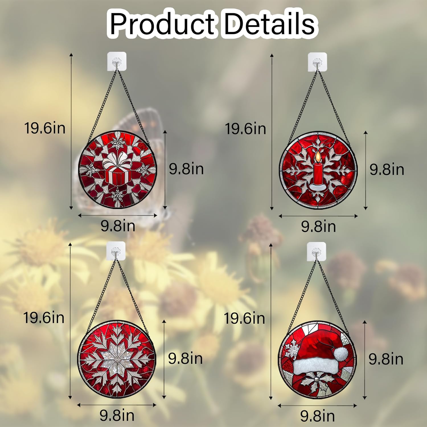 Stained Glass Window Hanging 4 Pcs Set Red Christmas Decorations Theme 9.8" - Suncatcher Door Garden Sun Catcher Decor Birthday for Mom Woman Nana Men Friend Wife