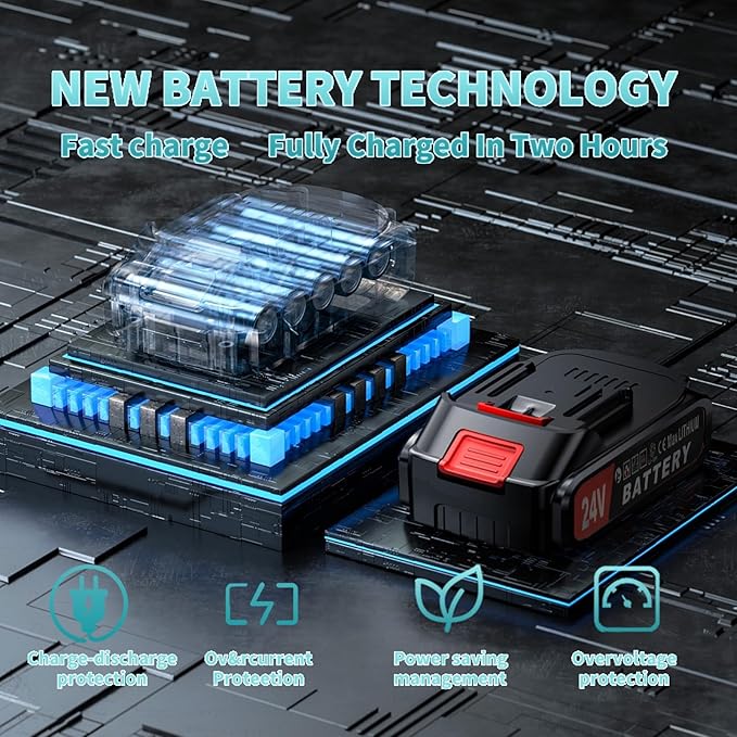• [Long-Lasting 24V Lithium Battery & Cordless Freedom]Powered by a rechargeable 24V lithium battery with 1.5Ah capacity, this electric chainsaw offers true cordless convenience. No more tangling cords or limited mobility—take it anywhere in your yard or workshop. Enjoy extended runtime with two included batteries, perfect for longer tasks like clearing fallen branches or shaping hedges.
