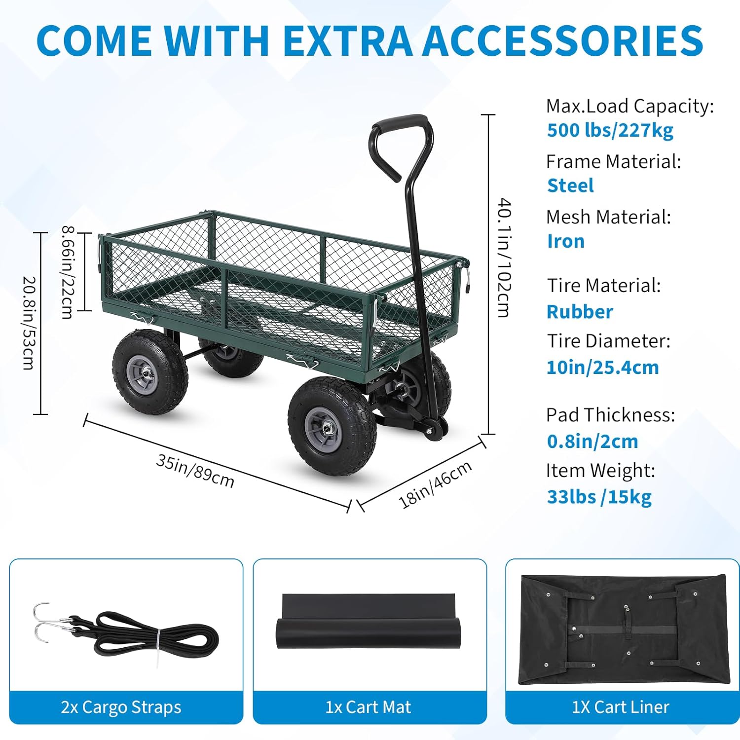 Heavy Duty Steel Garden Cart Folding Utility Wagon with Removable Cart Liner, 500 Lbs Capacity