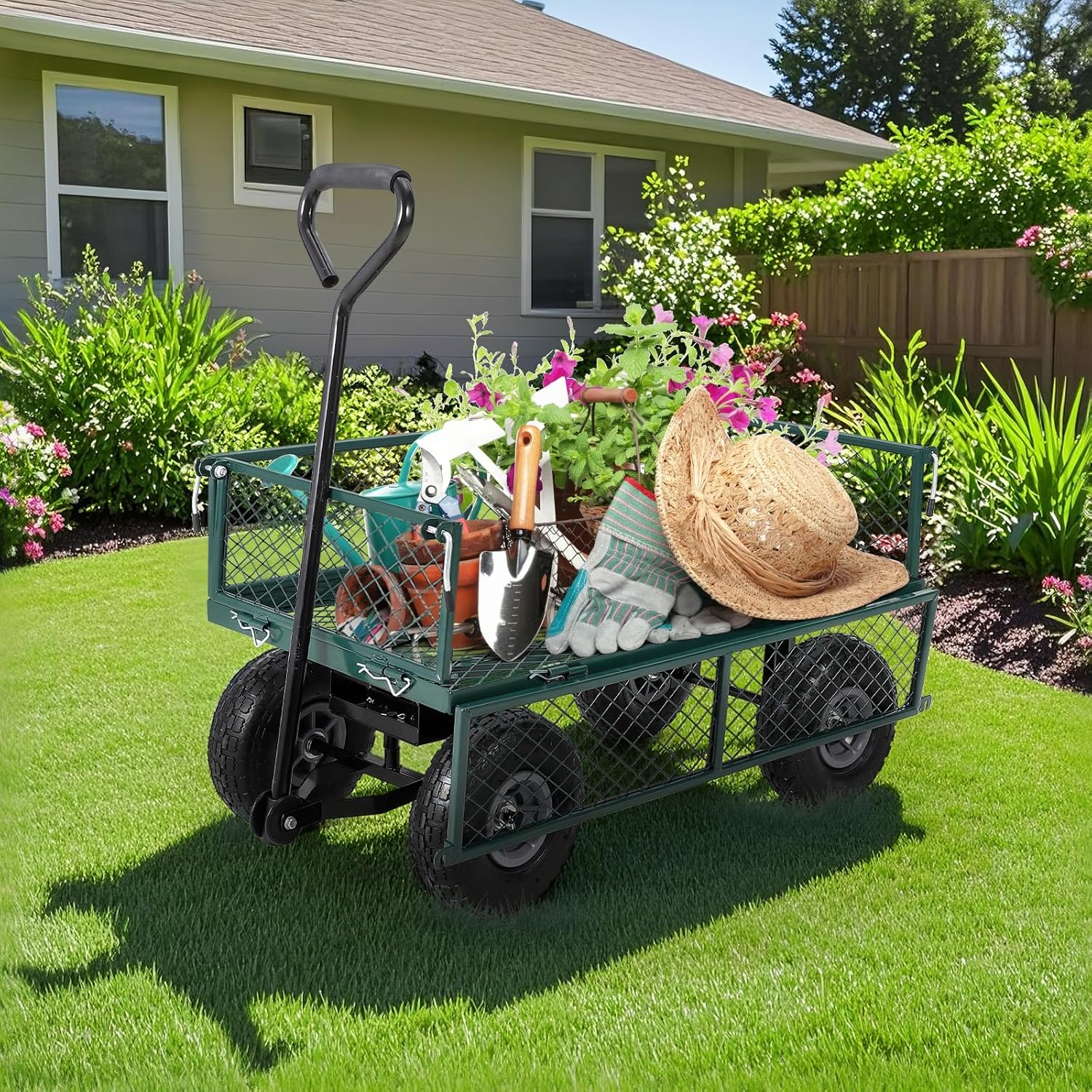 • Versatile Applications – Perfect for gardens, farms, or lawns, this wagon effortlessly transports firewood, fertilizer, tools, potted plants, and more. Its rugged 8-inch pneumatic wheels and robust construction make it a reliable companion for both light chores and heavy-duty tasks