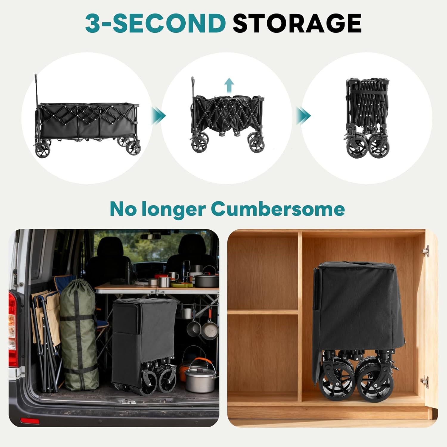 • Foldable Design: The unique one click folding mechanism of the heavy duty wagons cart allows it to be folded flat in seconds without the need for any tools. After folding, it can be stored upright and easily placed in the car trunk, corner or storage cabinet, greatly saving storage space. The equipped cover is convenient to carry and dustproof. The entire process of using and storing this storage rolling utility cart is very simple and efficient