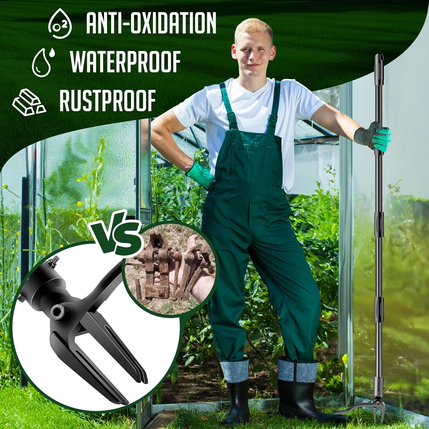 • 63" Stand-Up Design for Back & Knee Relief- Skip bending, kneeling, or straining—this Weed Puller Tool features an extra-long 63" adjustable handle (longer than standard 39"-44" tools) to let you weed standing up. Perfect for extended sessions in small home gardens, large lawns, or professional horticulture areas, it cuts stress on joints for pain-free weeding.